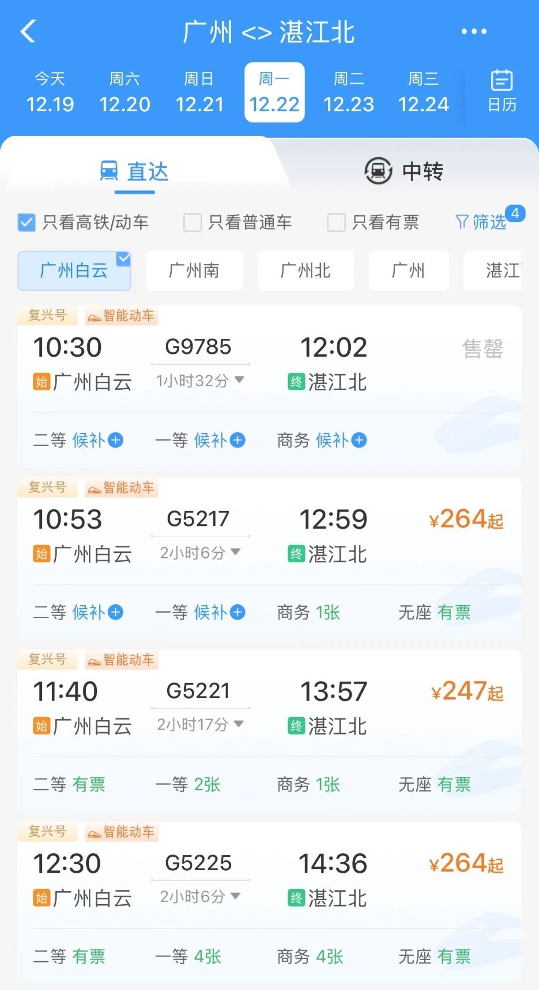 12月22日汕头南到汕头高铁运营班次已全部录入12306售票系统,票价和具体运行时间尚未公布,从惠州出发的话,惠州南站有班次,十分便利。