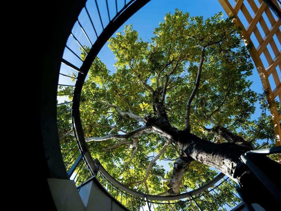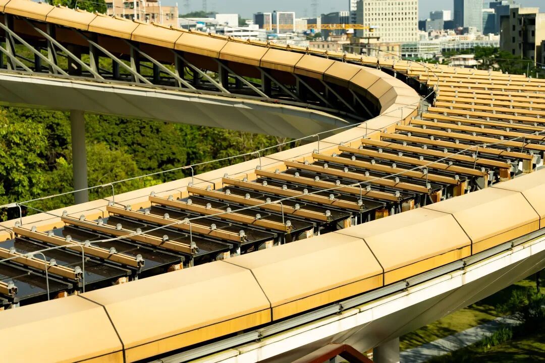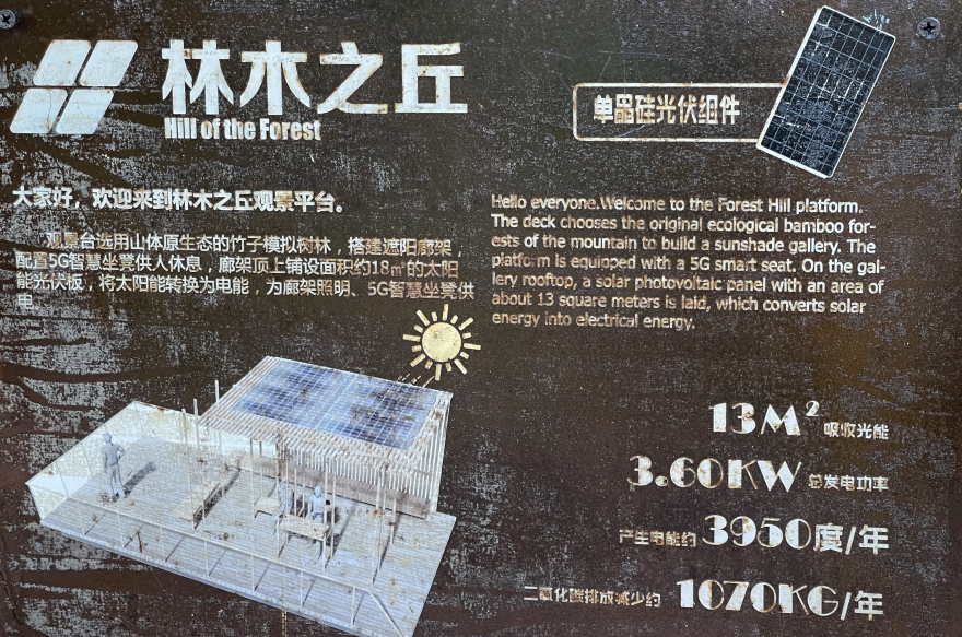 细心观察,你会发现连廊架顶上也铺设了光伏板,将阳光转化为电能:产生电能约3950度/年,二氧化碳排放减少约1070KG/年,没想到小小18㎡的光伏板,能达到这么大的环保效果!