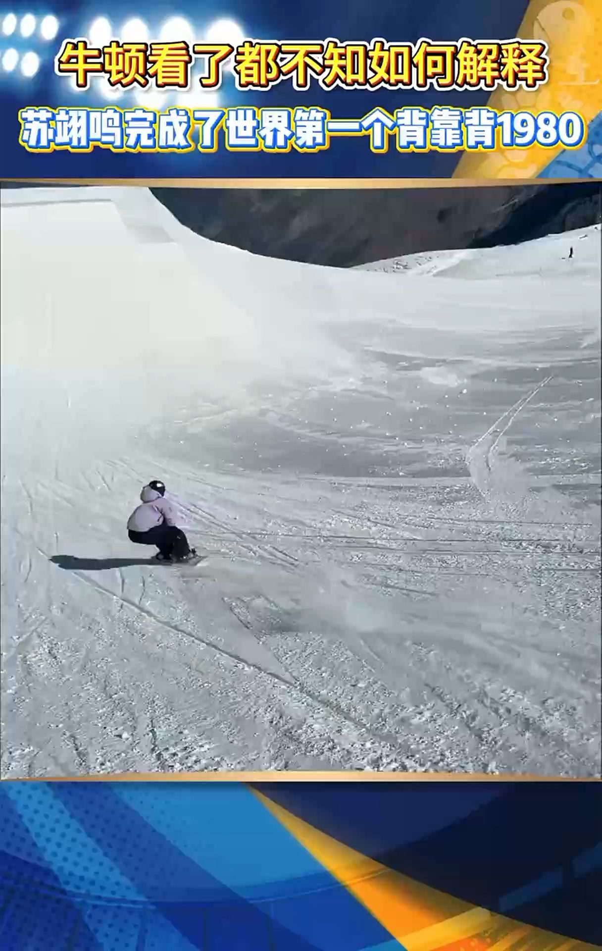 这是基于苏翊鸣在今年10月7日的一场坡面障碍技巧(坡障)训练中成功完成的世界上首个“背靠背”1980度空翻动作。