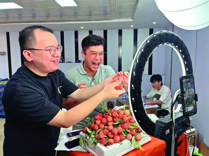 镇隆镇村民通过网络直播销售镇隆荔枝。