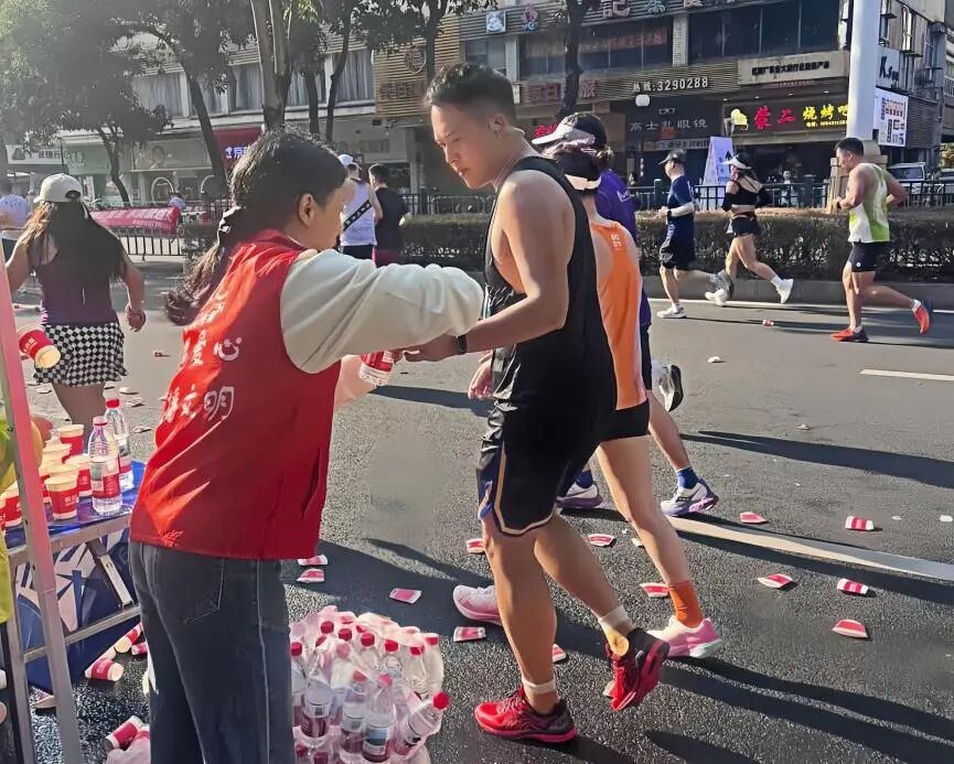 从第一声发令枪响,到最后一位跑者经过,他们的角色随时切换:是秩序的维护者,是热情的加油员,是应急的联络员,也是环境的守护者。一句响亮的“加油”,一次及时的指引,一杯递上的温水,都凝聚成跑者向前奔跑的助力。醒目的红马甲和蓝马甲成为赛道旁最令人安心的风景。