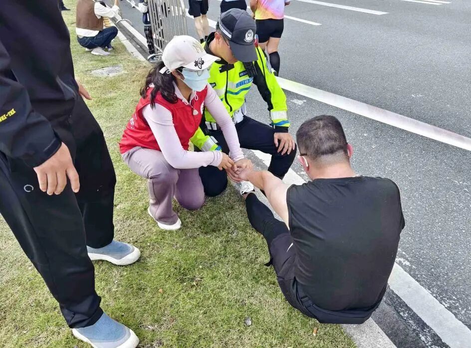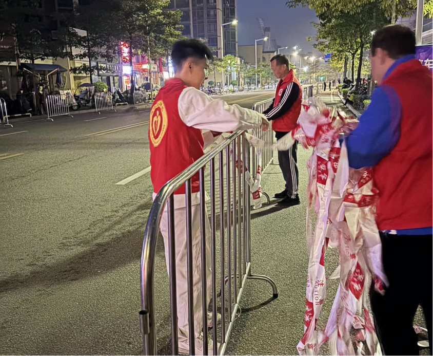 拉警戒线、稳固铁马、摆放指示牌、搬运物资、检查补给站……每一个环节都井然有序,只为在两小时后,为选手们呈现一条安全、顺畅、温暖的赛道。