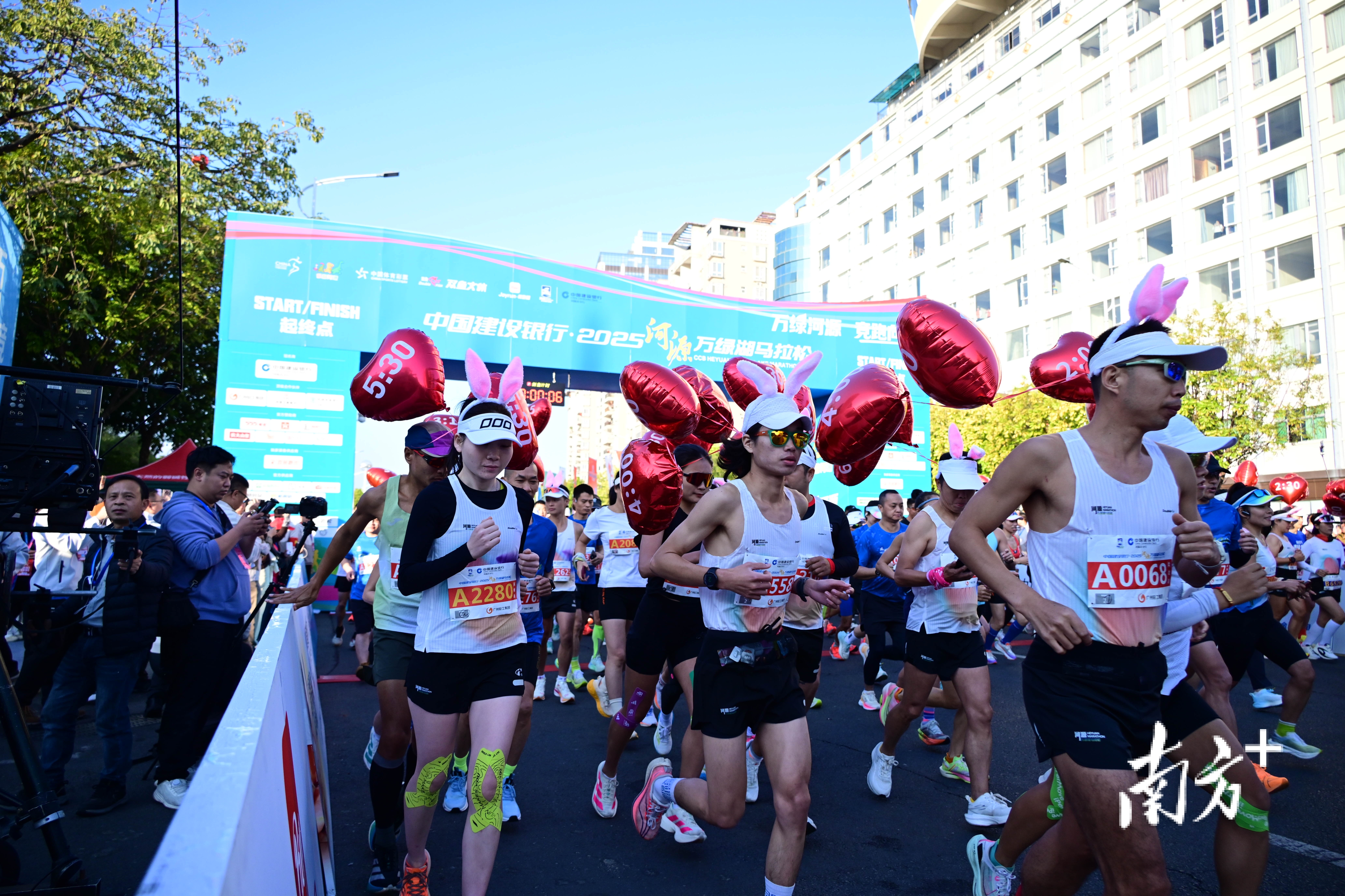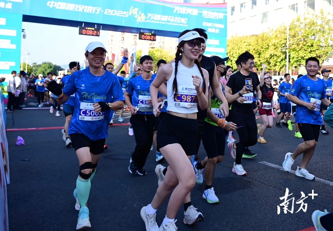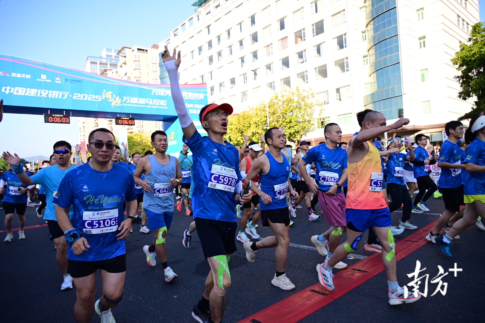 上午8时,2025河源万绿湖马拉松鸣枪开赛。