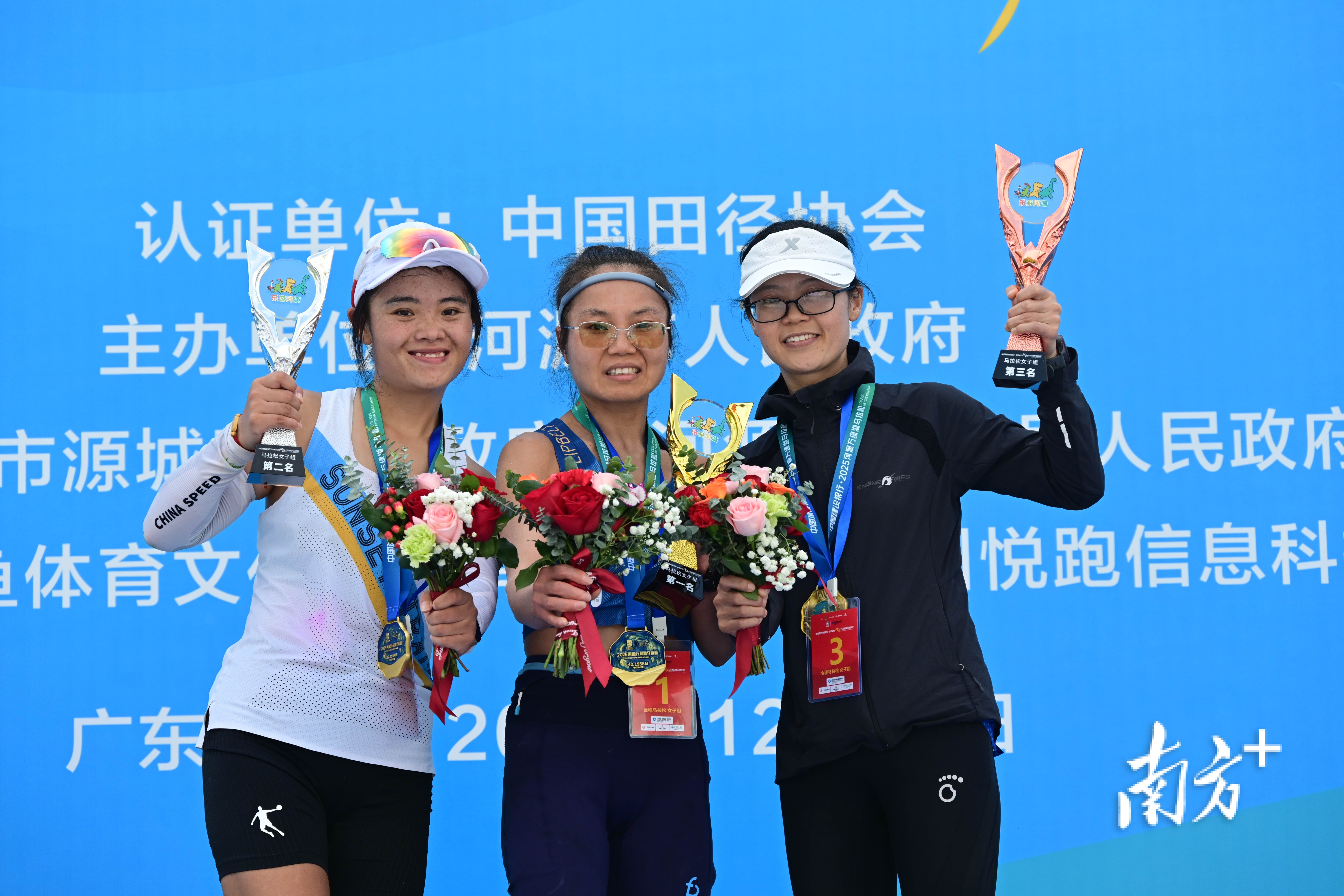“全马”女子组站台选手:喻俊莉、黄波波、段志芬。