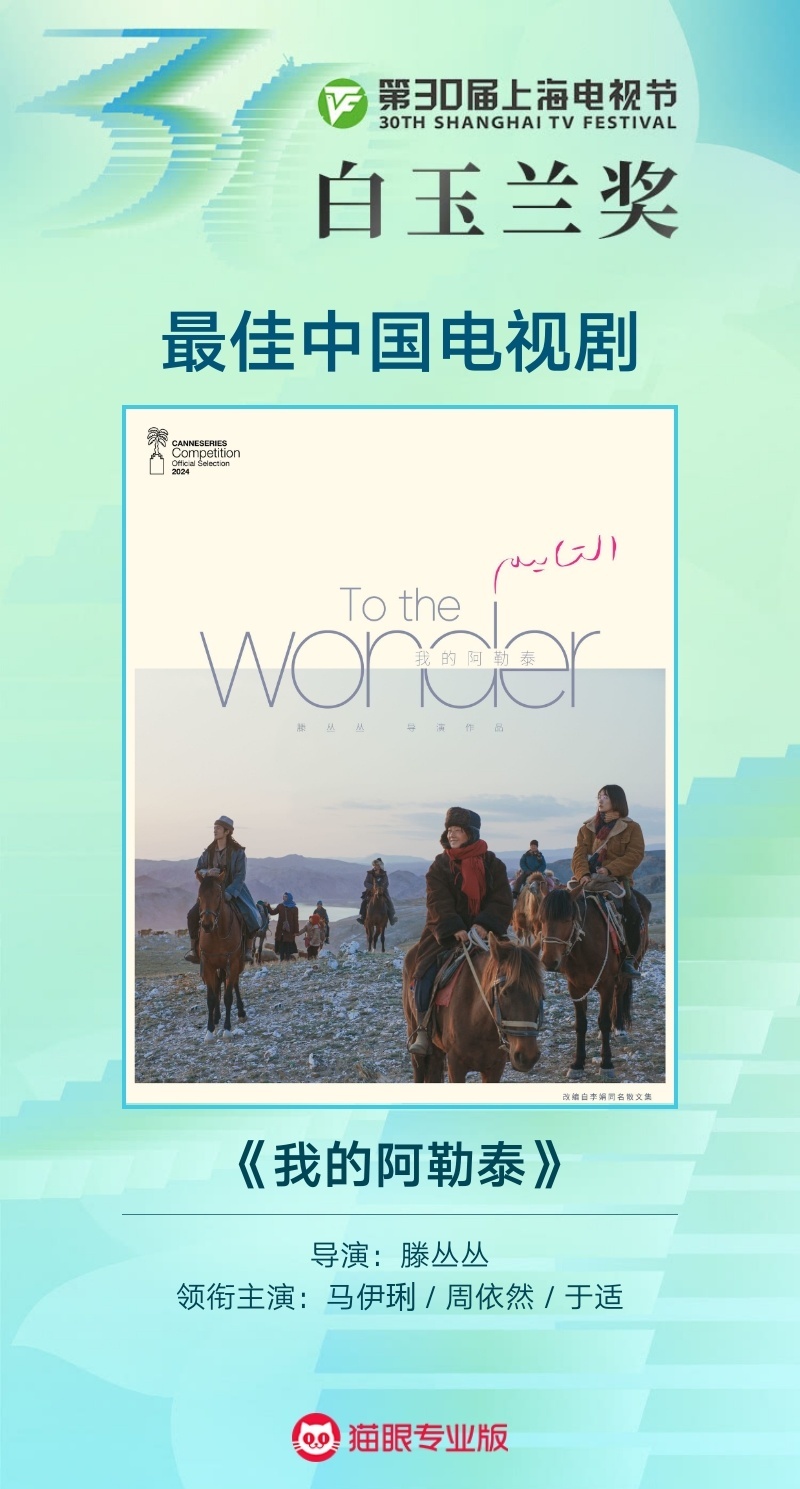 技术奖项方面,邵昌勇、朱寒冰、张晨凭借凸显中式美学的《国色芳华》获得最佳美术奖;刘懿增凭借呈现草原广袤无际及牧民悠然生活的《我的阿勒泰》获得最佳摄影奖。