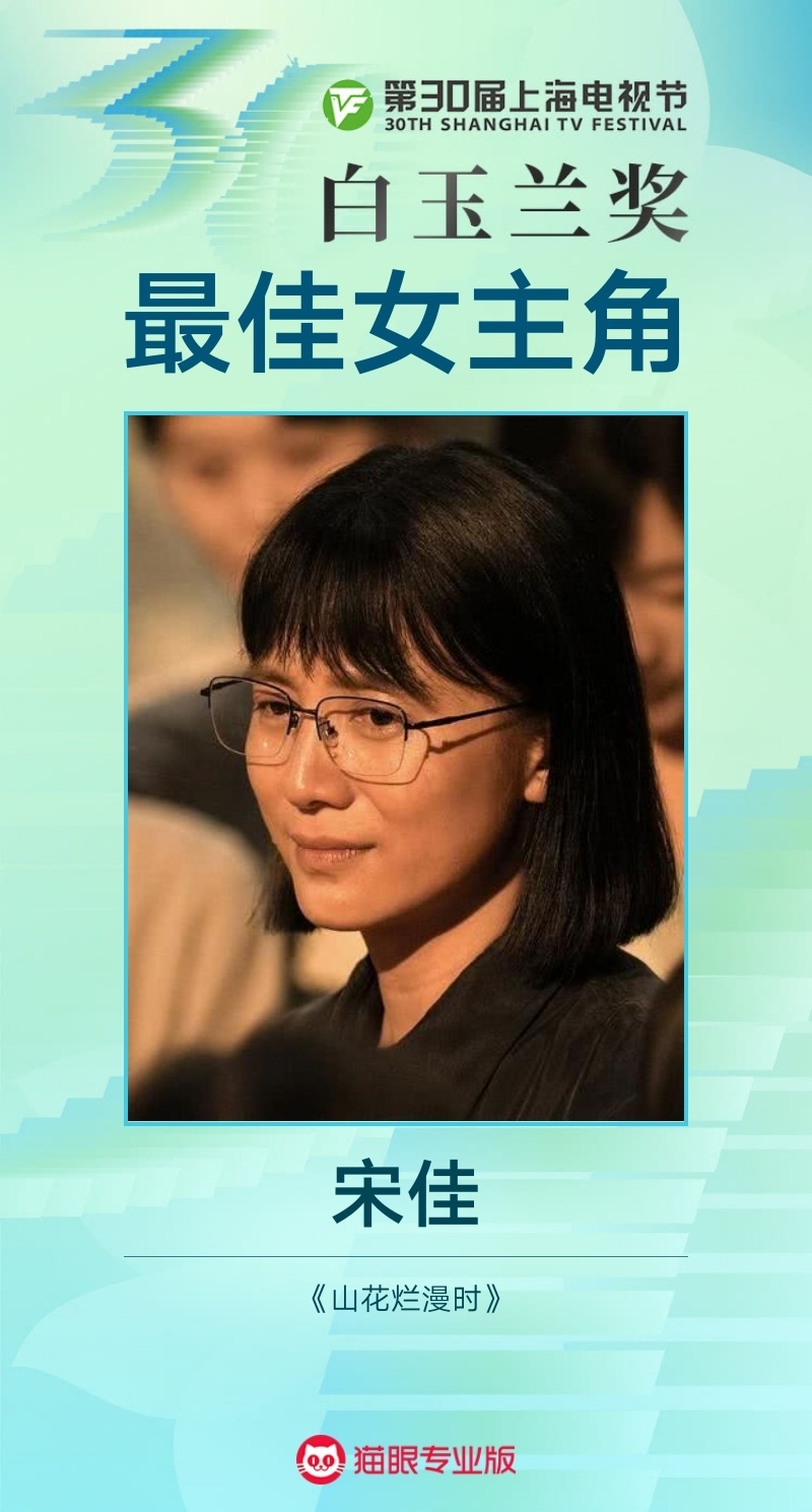 宋佳凭借《山花烂漫时》成功“击败”刘亦菲、马伊琍、闫妮、杨紫等其他四位提名者,夺得本届白玉兰奖最佳女主角奖项。宋佳在剧中饰演的张桂梅,不只是一个“伟光正”的英雄教师,她也发脾气,也爱较真,督促学生学习时有“不近人情”的严苛,向企业筹钱时有跳脱规则的“活泛”,是一个有血有肉的普通人。