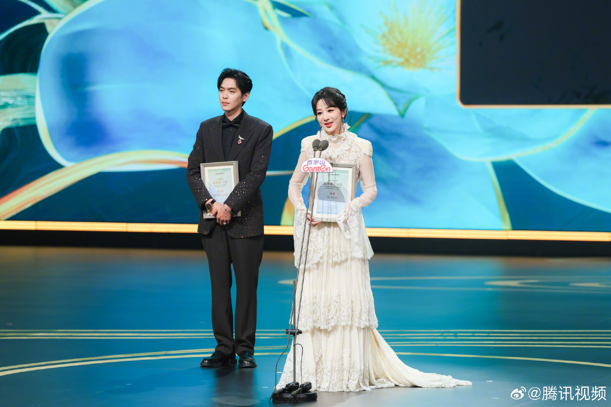 杨紫、张若昀一同获颁中国电视节目海外推广大使称号,两人也分别凭借《国色芳华》和《庆余年第二季》中的精彩表现获本届白玉兰奖最佳女主角和最佳男主角提名。据悉,这两部作品在海外播出时均获得了较高热度。