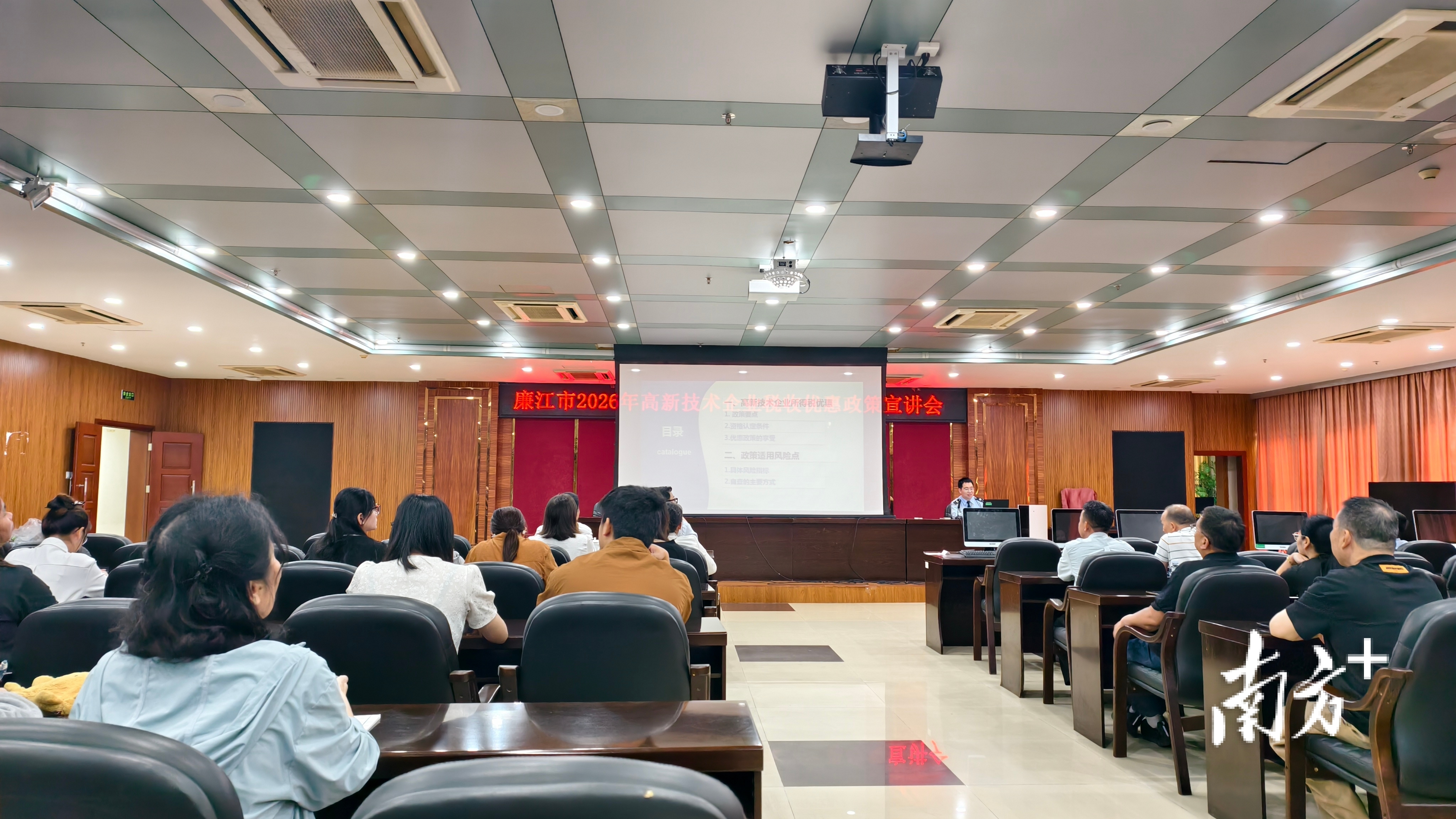 廉江市科工贸局副局长苏广潇、国家税务总局廉江市税务局副局长钟明和相关企业代表出席本次宣讲会。