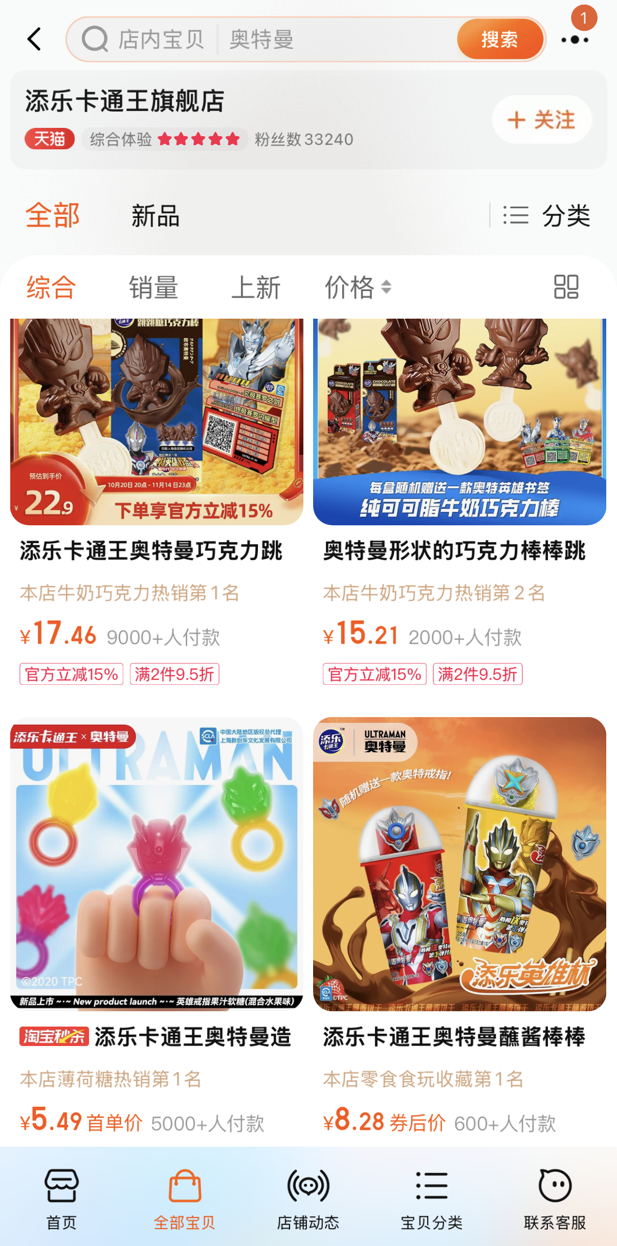 金添动漫的奥特曼跳跳糖牛奶巧克力(图/添乐卡通王电商平台页面)