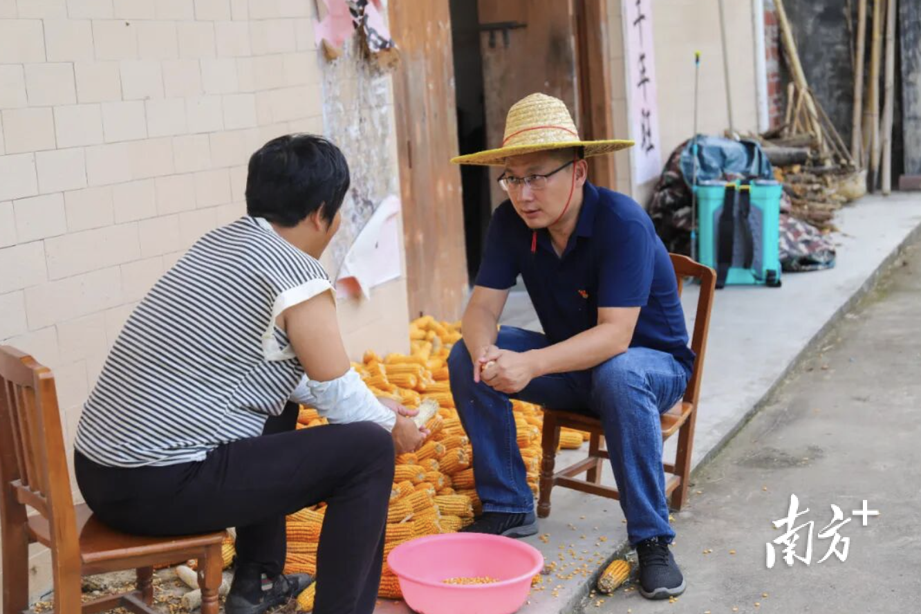 朱斌与厚垌村村民交谈。图片来源:信宜发布