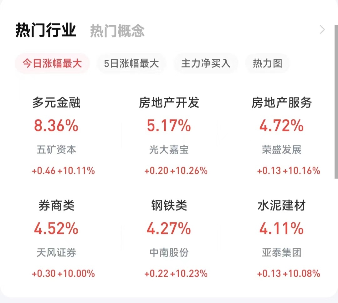 房地产板块一度反弹,不过随着部分个股高开低走而回落。传媒板块涨幅超过房地产,成为一匹杀出重围的黑马,智度股份、福石控股、中广天择、华扬联众、吉视传媒涨停。