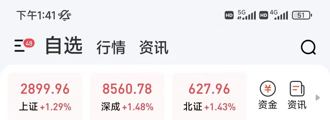 截至下午1点41分,三大指数涨幅有所回落,沪指失守2900点,报2899.96点,上涨1.29%。