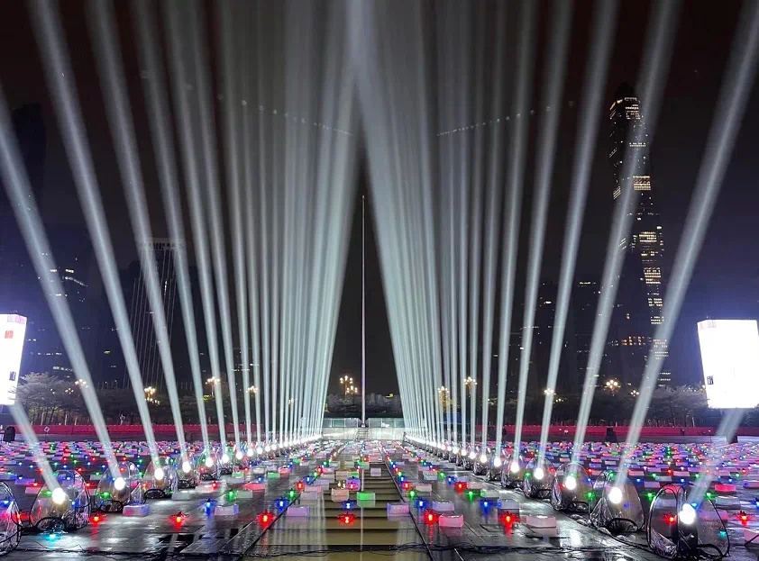 这场表演由法国团队做设计,中国无人机编队表演执行。而在表演中把无人机和烟花,玩得这么“赛博朋克”的中国团队,正是来自深圳龙岗的无人机企业——高巨创新。
