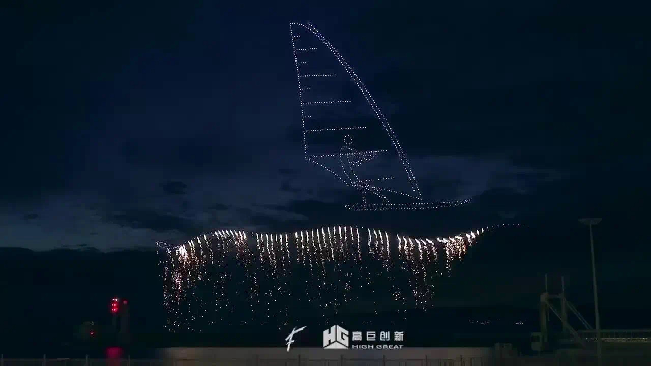 整场无人机表演围绕奥运主题依次展现了奥运火炬、帆船、橄榄树等元素,表演中还加入了烟花效果,“科技+烟花”点亮马赛夜空。
