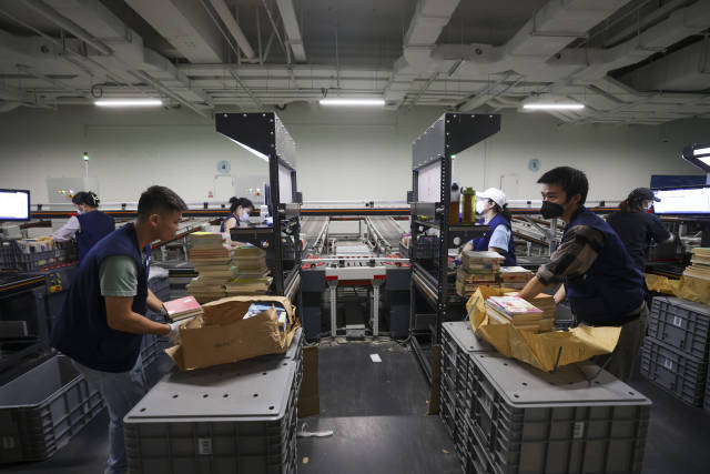 全自动化、智能化分拣系统,精确度高达99.9%,全面开放后,现场从预约到拿到书仅需8分钟。