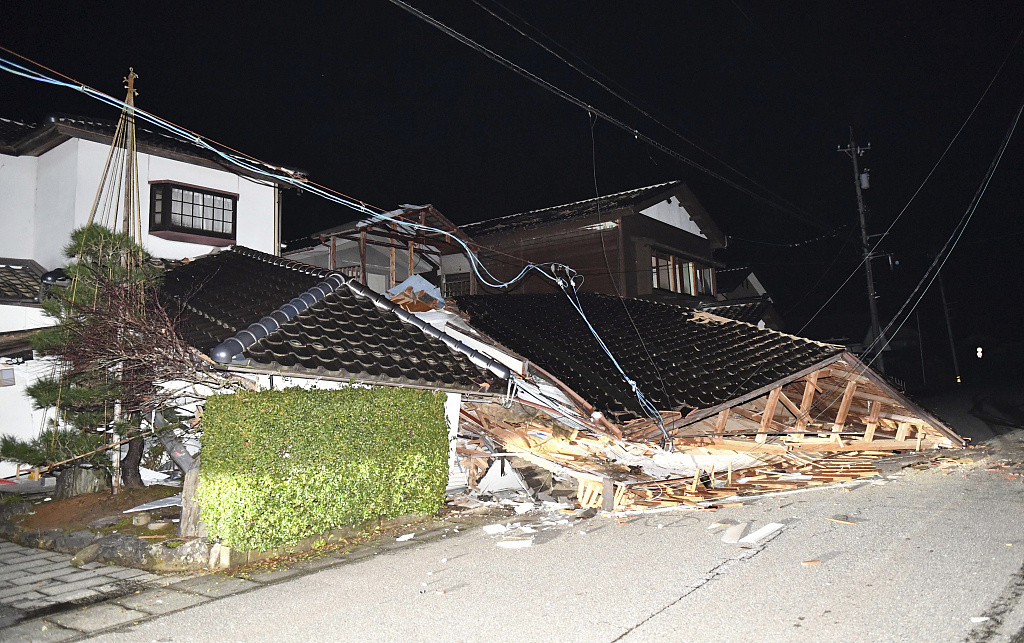 △1月1日,日本石川县的一处房屋在地震中被摧毁。