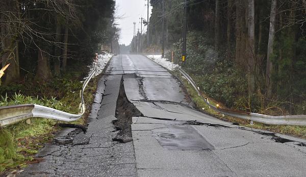 日本石川县能登地区地震导致多地道路受损 部分航班取消