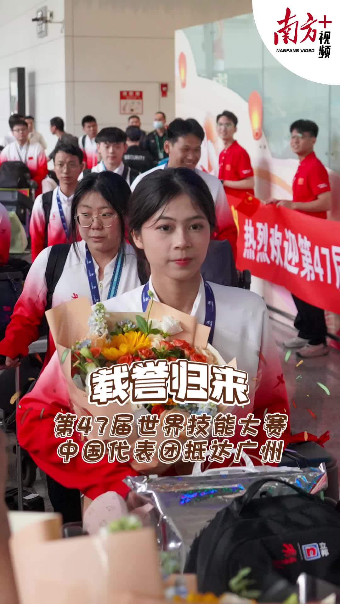 载誉归来!第47届世界技能大赛中国代表团抵达广州