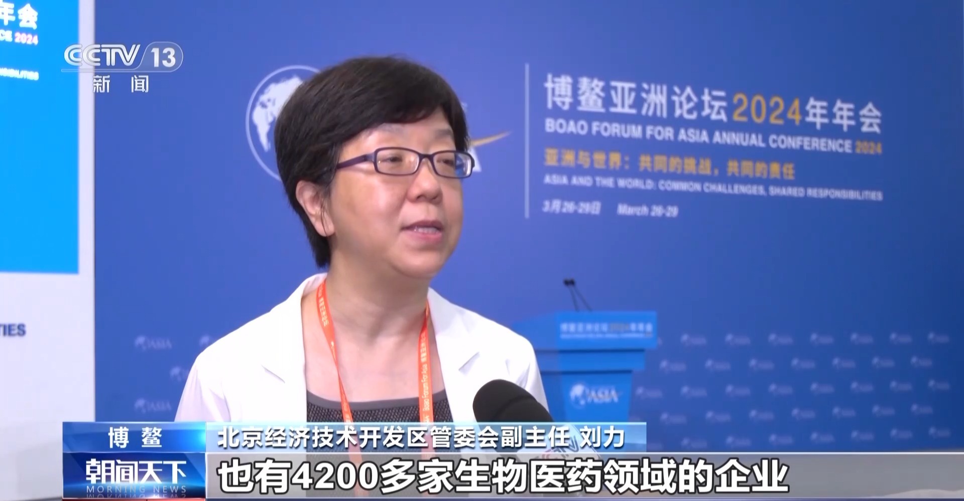 北京经济技术开发区管委会副主任 刘力:目前我们的(医药健康)产业规模已经突破了1000亿(元),也有4200多家生物医药领域的企业,聚集落户在亦庄。我们也希望通过博鳌亚洲论坛这样的国际会议,吸引更多的跨国企业,用好中国的市场和创新资源,有更多更好优质的项目能够投资中国、投资北京。