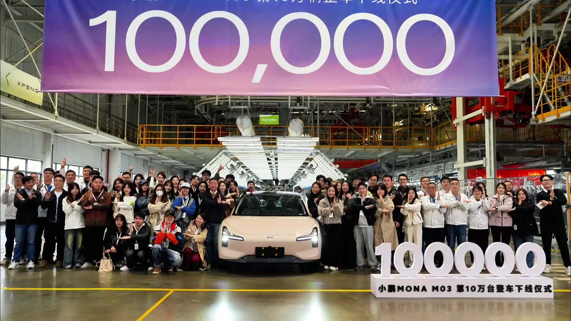 3月31日,小鹏MONA M03第10万台整车在肇庆工厂小鹏MONA制造基地正式下线。