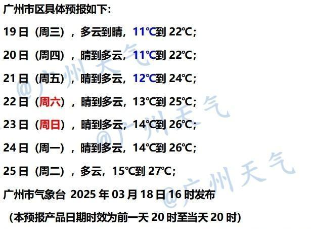 因为受弱阿冷频繁打扰,广州明后两天气温小幅波动,虽有Sunny哥营业,但转为晴冷节奏,昼夜温差加大,直到21-23日冷空气影响减弱,广州将晴到多云,气温逐日回升。