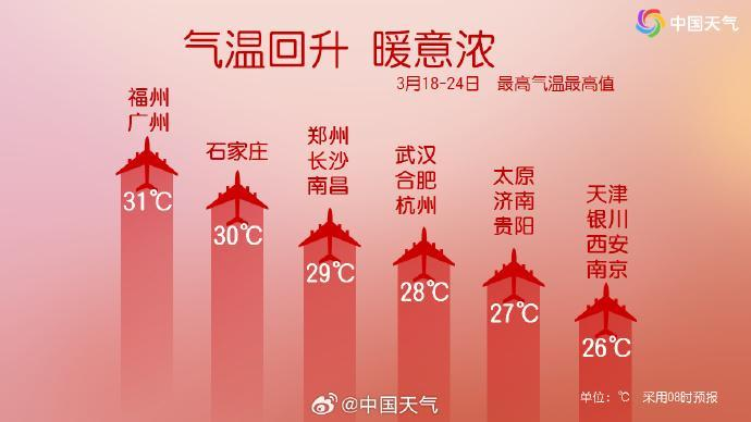 昨日,全国大部的阳光“充值”成功,而今天(19日)开始至周末,升温势头则更猛烈,华北南部、黄淮及其以南多地最高气温可超25℃。