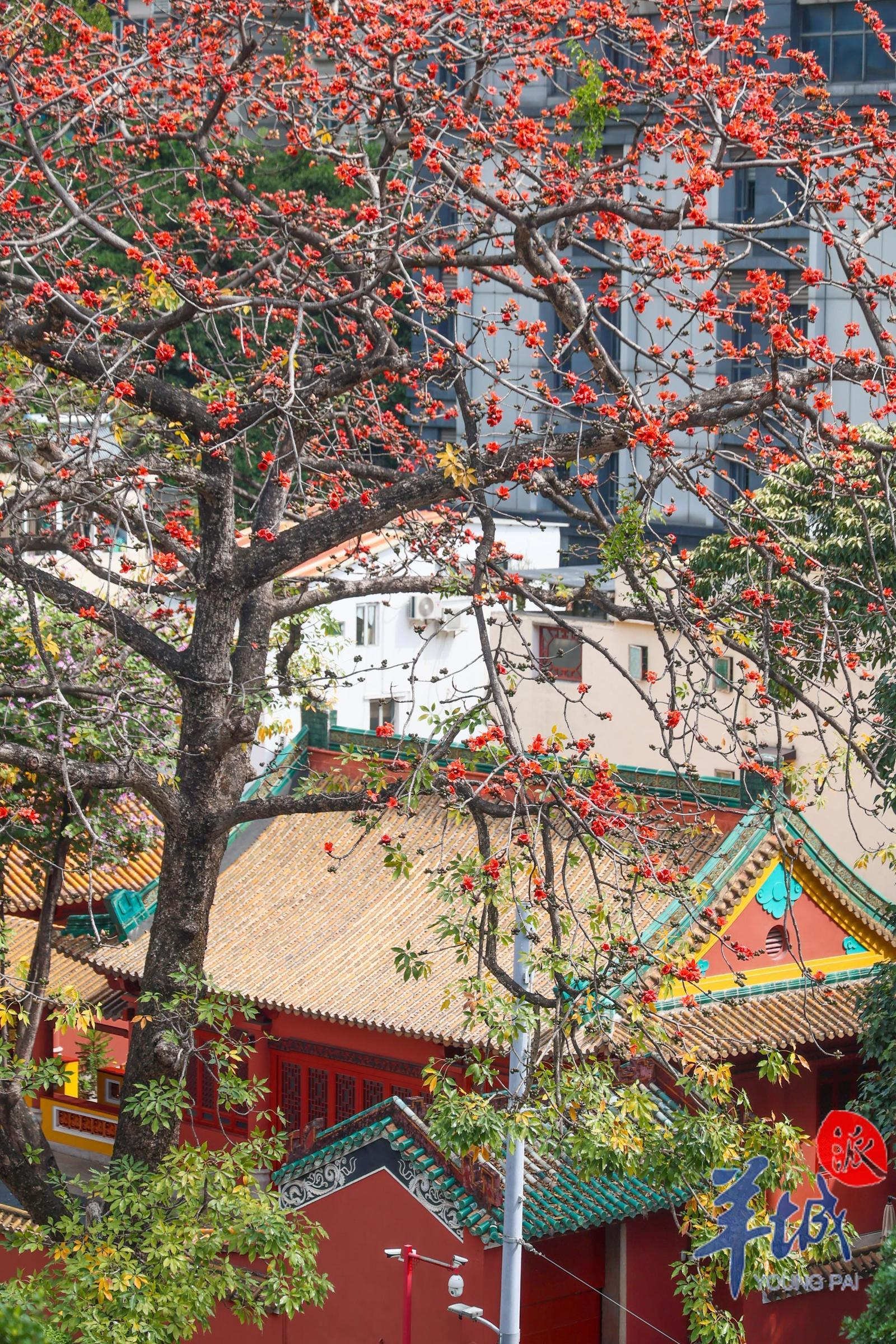 广州越秀区农讲所内,高大的木棉树与古朴的红墙相映成画。图:羊城晚报记者 刘畅