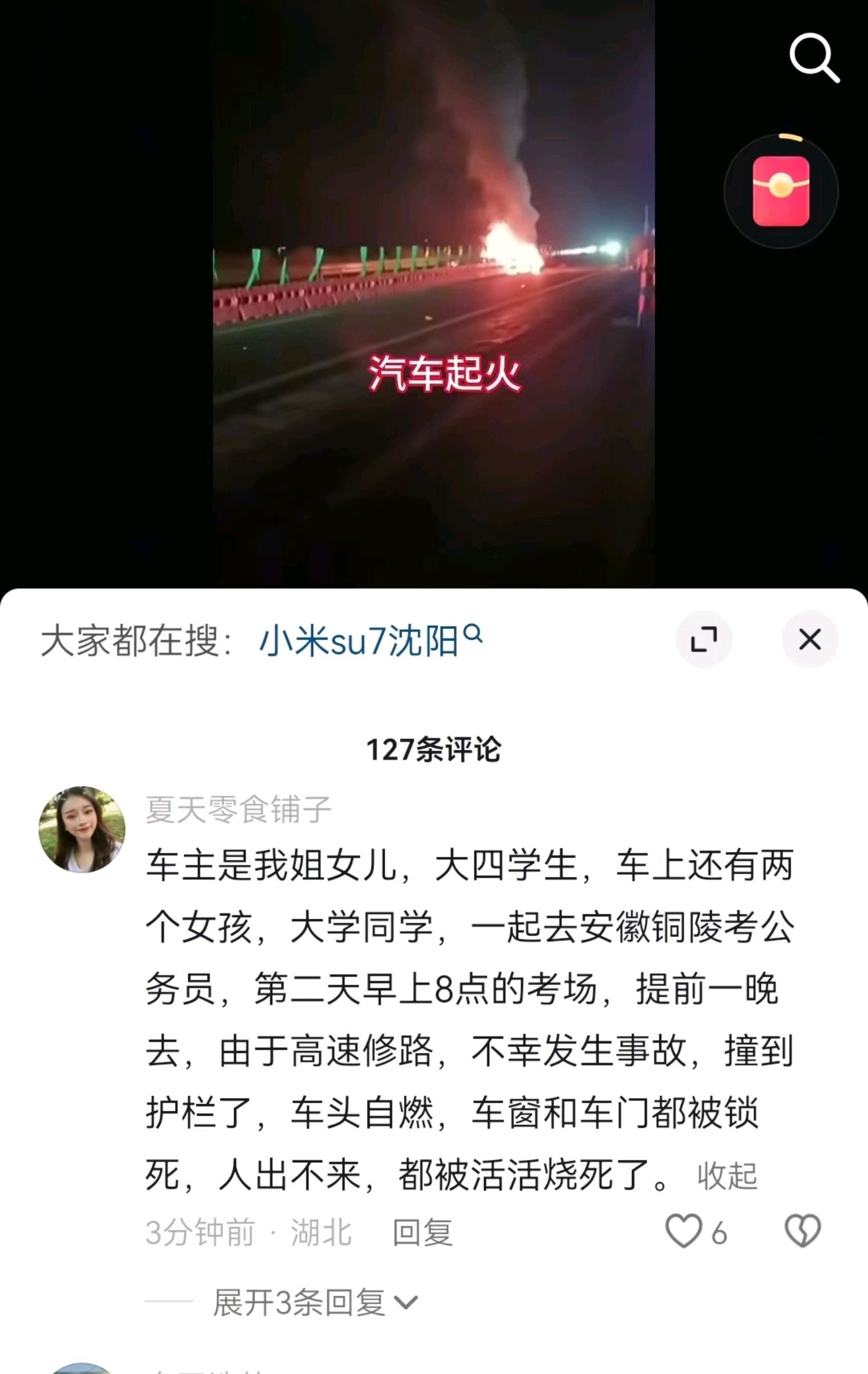 小米SU7高速上碰撞爆燃,铜陵官方回应:致3人死亡,交警调查中