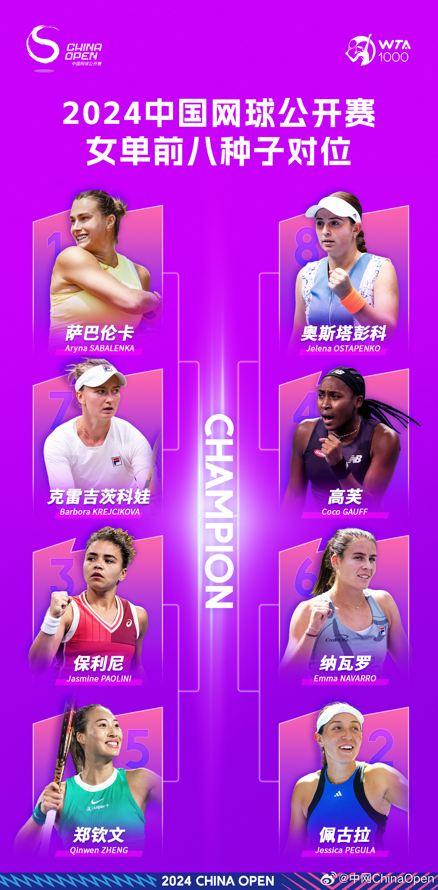 2024中网女单正赛签表出炉