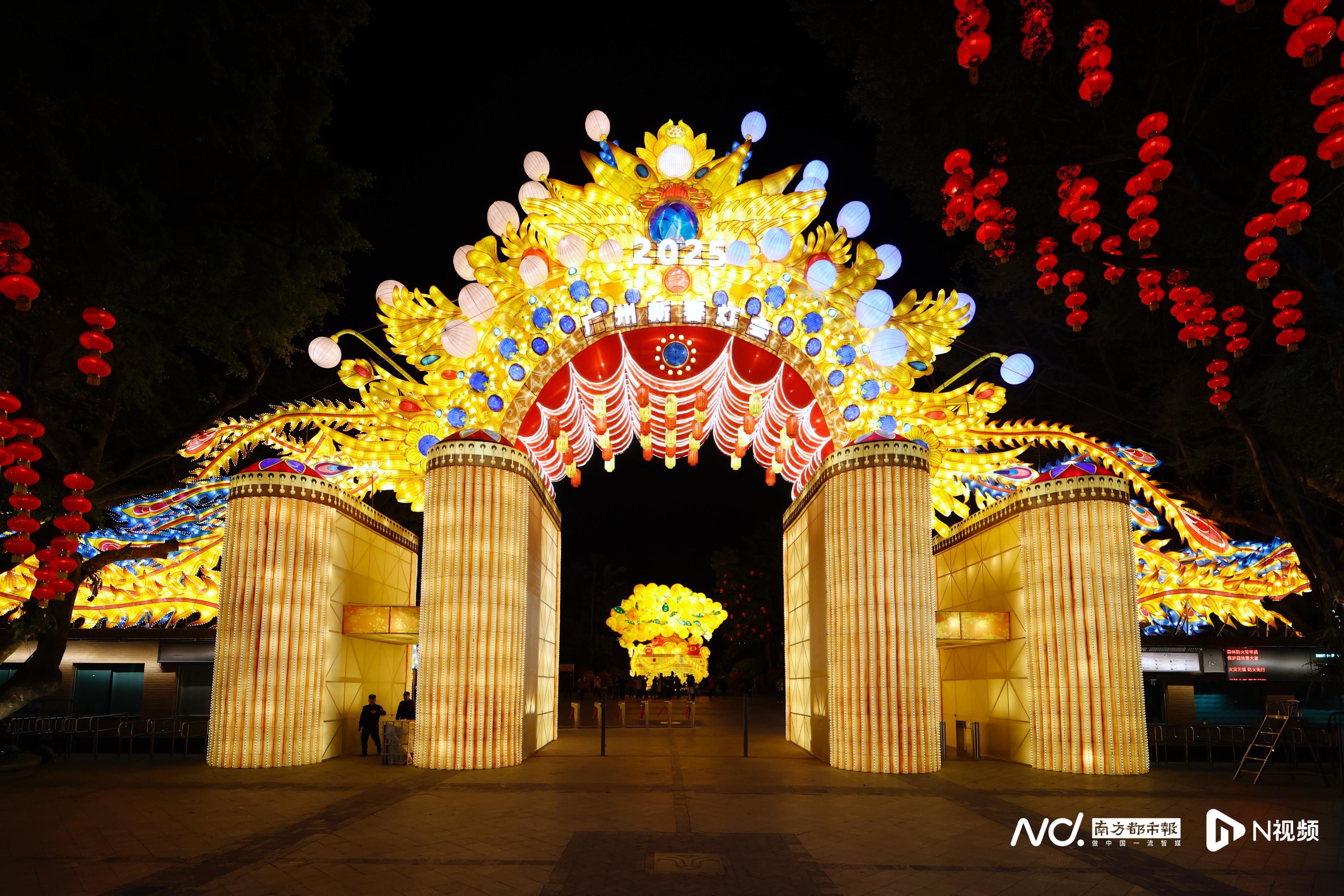 1月13日晚,为做好2025广州新春灯会开幕前的准备工作,越秀公园在闭园后进行亮灯测试。主门楼灯光亮起,路过的行人不禁赞叹:“哇!好靓!”。2025广州新春灯会以“花开越秀,遇见锦鲤”为主题,将用25组大型灯组、30组中型灯组、20组小型灯组,总计75组灯组打造兼具广府特色和现代风潮的视觉盛宴,诉说美丽花城万千气象。