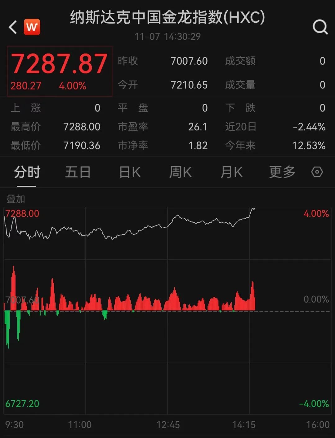 中概股方面,纳斯达克中国金龙指数涨4%。