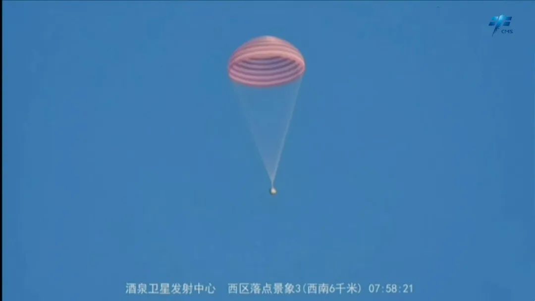07时21分,北京航天飞行控制中心通过地面测控站发出返回指令,神舟十六号载人飞船轨道舱与返回舱成功分离。之后,飞船返回制动发动机点火,返回舱与推进舱分离,返回舱成功着陆,担负搜救回收任务的搜救分队及时发现目标并抵达着陆现场。