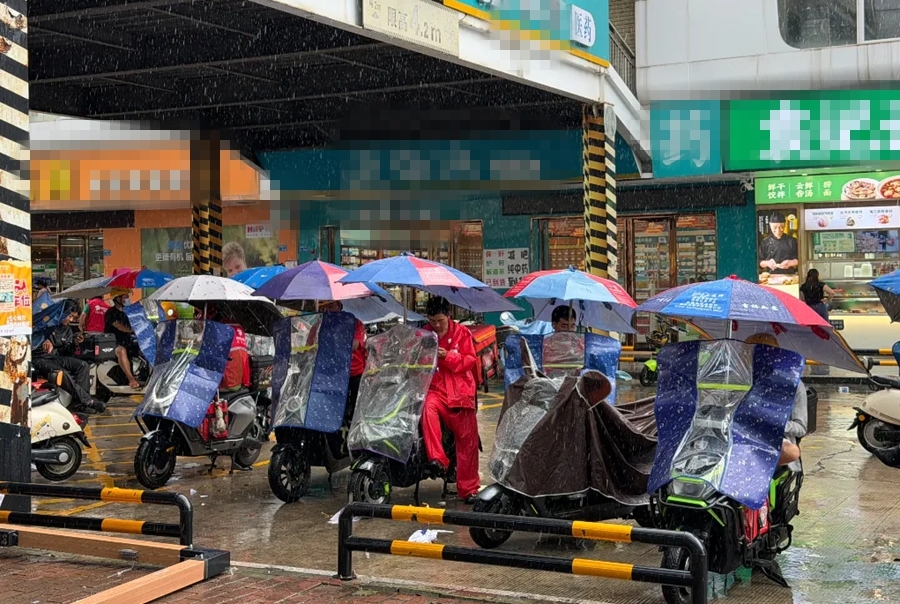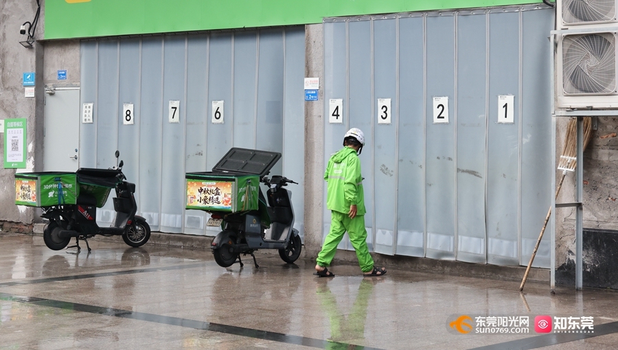 9月25日上午九点,凤岗镇中心外卖配送网点内,骑手们已整装待发准备接单派送,周边街道商铺基本恢复营业。饮品店店员谢先生:“9月24日晚上雨太大,就没过来开业,今天一早就来干活了,订单比预想中多不少。”