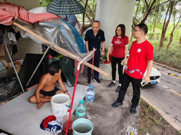 此外,针对流浪人员这一特殊群体,社区工作人员主动巡查社区天桥底等重点区域,发现1名流浪人员后,及时上报街道应急办,经过耐心沟通台风危害,细致讲解应急避难场所的保障措施,最终成功引导其前往社区应急避难场所,并为其提供应急物资,确保“不漏一户、不落一人”,用实际行动在风雨中筑起民生安全屏障,让社区的温暖力量,成为台风天里群众最安心的“避风港”。