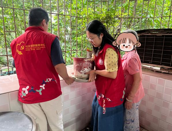 当天下午,独居高龄的陈阿姨焦急地打电话进社工办公室:“姑娘,我家洗手间的窗户关不紧,太高了我实在够不着,台风要是刮起来,玻璃碎了可怎么办啊!”接到诉求后,社工立即联合工作站网格同事组成“应急帮扶小组”,携带工具火速赶往陈阿姨家中。抵达现场后,社工分工协作,一组踩着凳子仔细关闭高处窗户,用胶带在玻璃上贴出“米”字形加固,降低台风导致玻璃破损的风险;另一组检查阳台安全,发现阳台角落堆放的花盆存在坠落隐患,当即小心将花盆搬至地面安全区域。