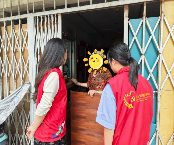 9月22日,台风预警信号拉响,在怡景社区党委领导下,怡景社区党群服务中心迅速响应台风防范工作要求,一场覆盖社区高龄独居长者、困境妇女儿童等重点群体的“风雨守护行动”同步启动。社区工作人员及社工化身“移动预警员”,通过上门探访敲开独居长者家门、电话连线叮嘱困境家庭、微信推送防御指南等方式,逐户传递台风预警信息,反复提醒“非必要不外出,提前备好饮用水、方便食品等应急物资,及时加固门窗、收回阳台物品”,用耐心叮嘱筑牢群众安全防线。