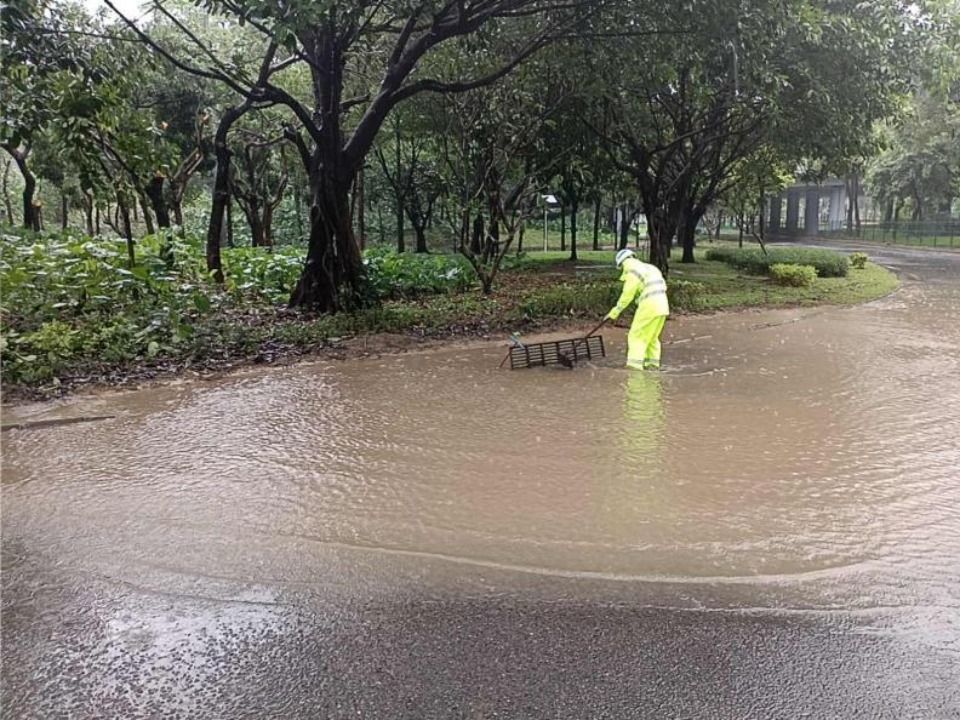 台风中,在城市主干道上,一群穿着反光雨衣的“红色管家”格外醒目。他们不是单人作战,而是以3-5人为小组分段作业:有人负责掀井盖加速排水,有人清理雨水箅堵塞物,有人放置警示标志。