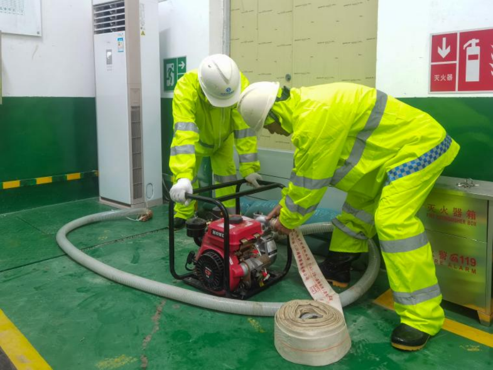 同一时间,桥头厂班组对挡水板进行二次加固,清溪厦坭厂开展用电安全排查,沙田福禄沙厂临海迎战风暴潮,提前安装抽水泵并测试排水流程……