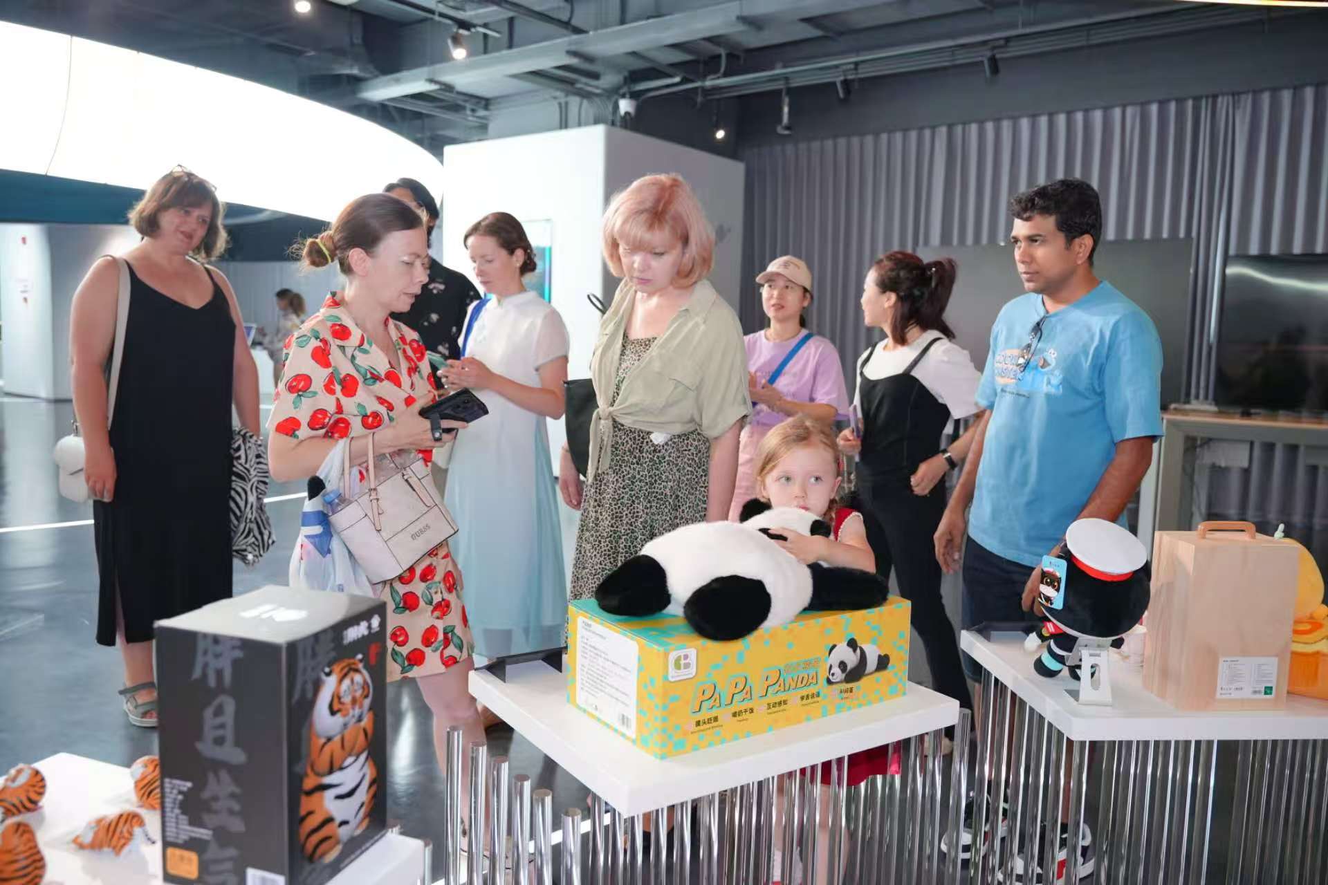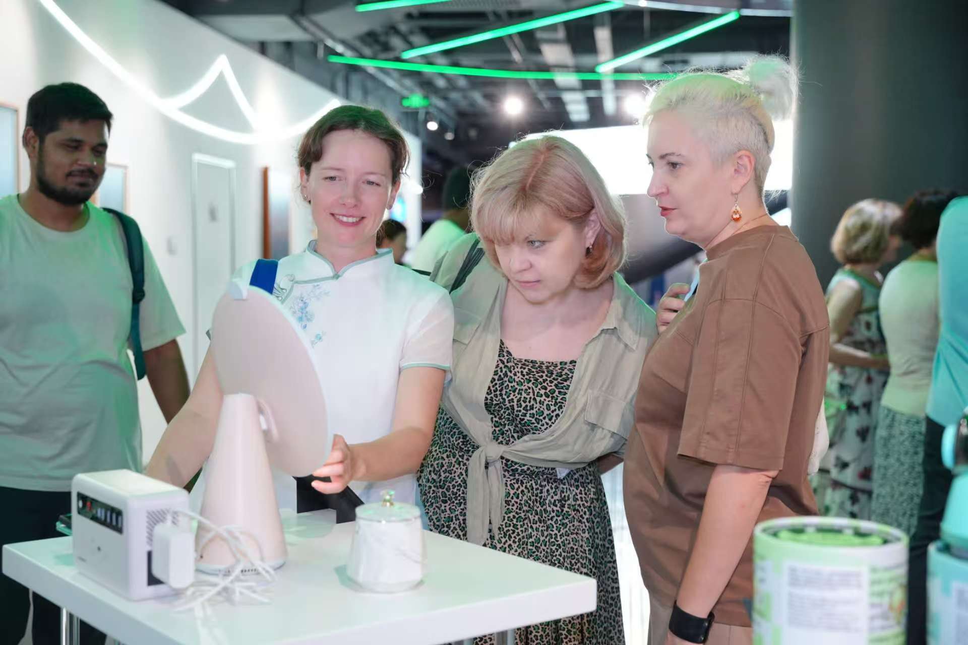 活动首站,国际人才们走进龙城街道的龙岗数字创意产业走廊展示中心。在专业讲解员的引导下,大家深入了解龙岗数创走廊的产业布局与发展状况,沉浸式感受虚拟数字人、空气悬浮3D技术、元宇宙直播间等前沿科技。“我想探索每一个细节,有趣的是,每个展品都呈现了。”“这里的创新氛围令人振奋!”一项项前沿科技引得大家频频驻足。一位高层次人才边体验边感叹。通过沉浸式参访,国际人才直观感受到龙岗高质量发展的科技脉动。