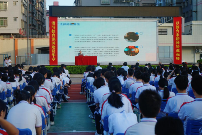新学期伊始,为筑牢青少年法治思想防线,有效预防和减少青少年违法犯罪行为,近日,龙川县人民法院党组书记、院长黄焕棠走进龙川县田家炳中学,以“护航青春,法治同行”为主题,为该校3500余名师生送上一堂生动的法治教育课,营造安全、和谐、有序的校园法治环境。