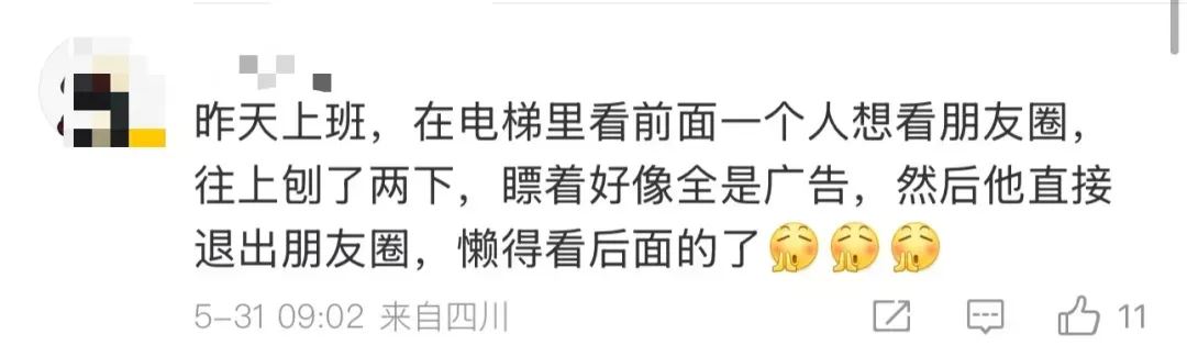 有网友认为,与其折叠朋友圈,不如解决朋友圈里被推送的广告。