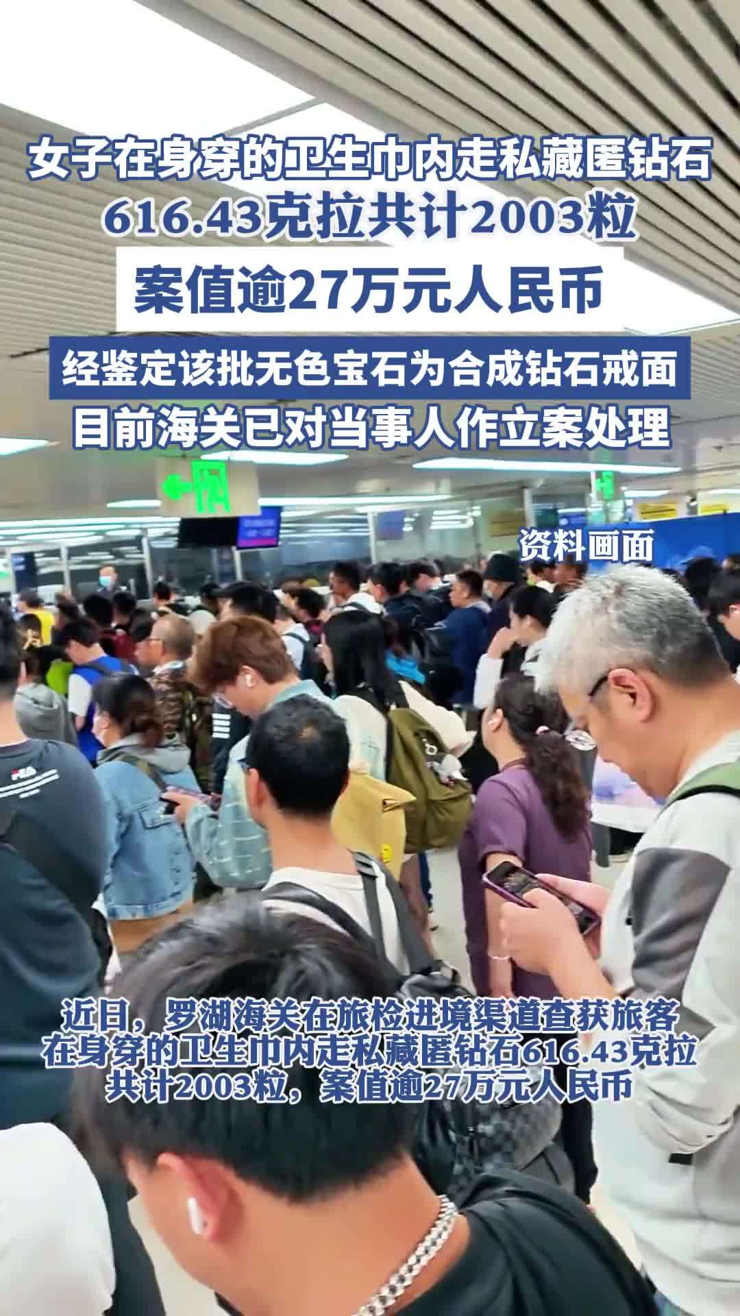 女子在贴身卫生巾里藏2003粒钻石,海关:已立案