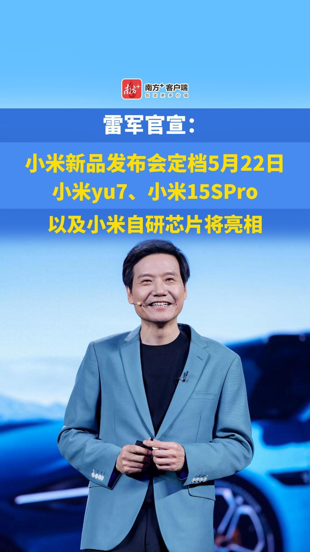 雷军官宣:小米新品发布会定档5月22日,小米yu7、小米15SPro以及小米自研芯片将亮相