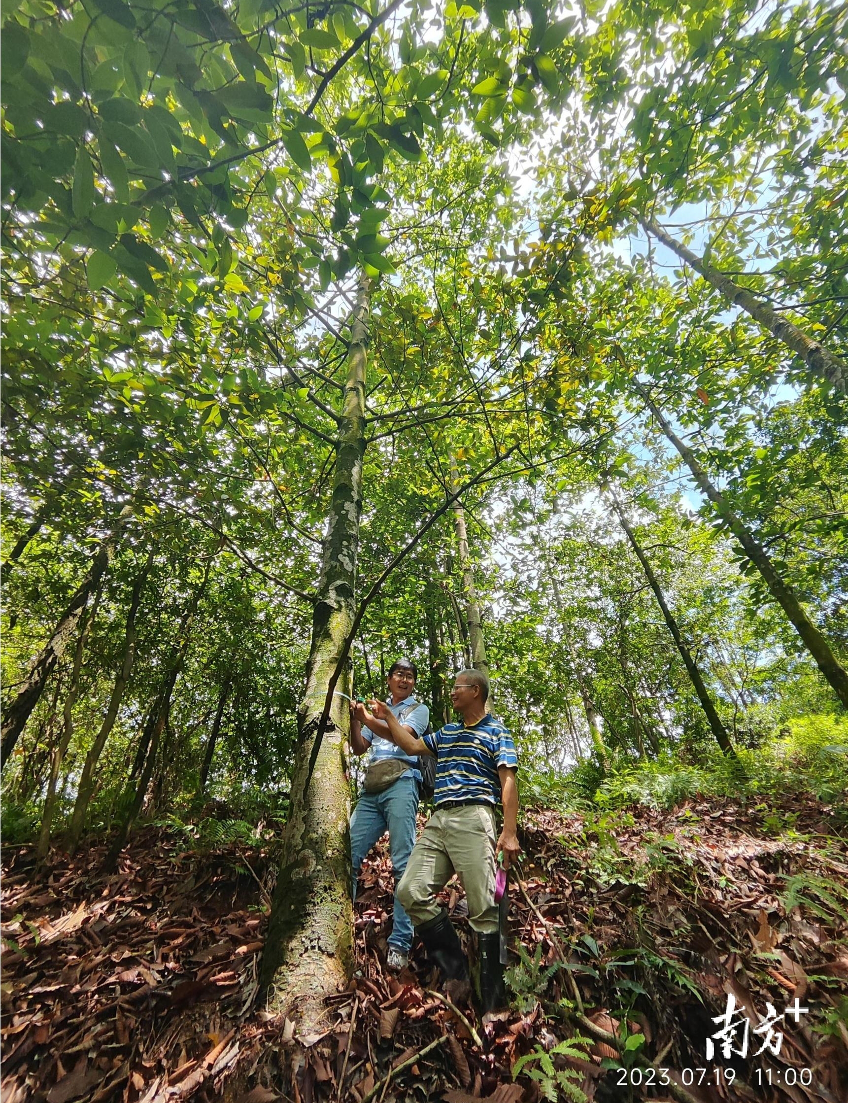 2003年4月,来自泰国和越南的7个龙脑香科树种在鹤山“安家落户”。经过近20年的引种驯化观测,具翼龙脑香表现最为突出——平均每年胸径增长1.0—1.5厘米,树高增长0.8—1.0米,在江门地区适应性最强、长势最快。这也意味着,一棵具翼龙脑香幼苗在江门生长20年,胸径可达20—30厘米,树高可达16—20米,完全具备培育大径材的潜力。