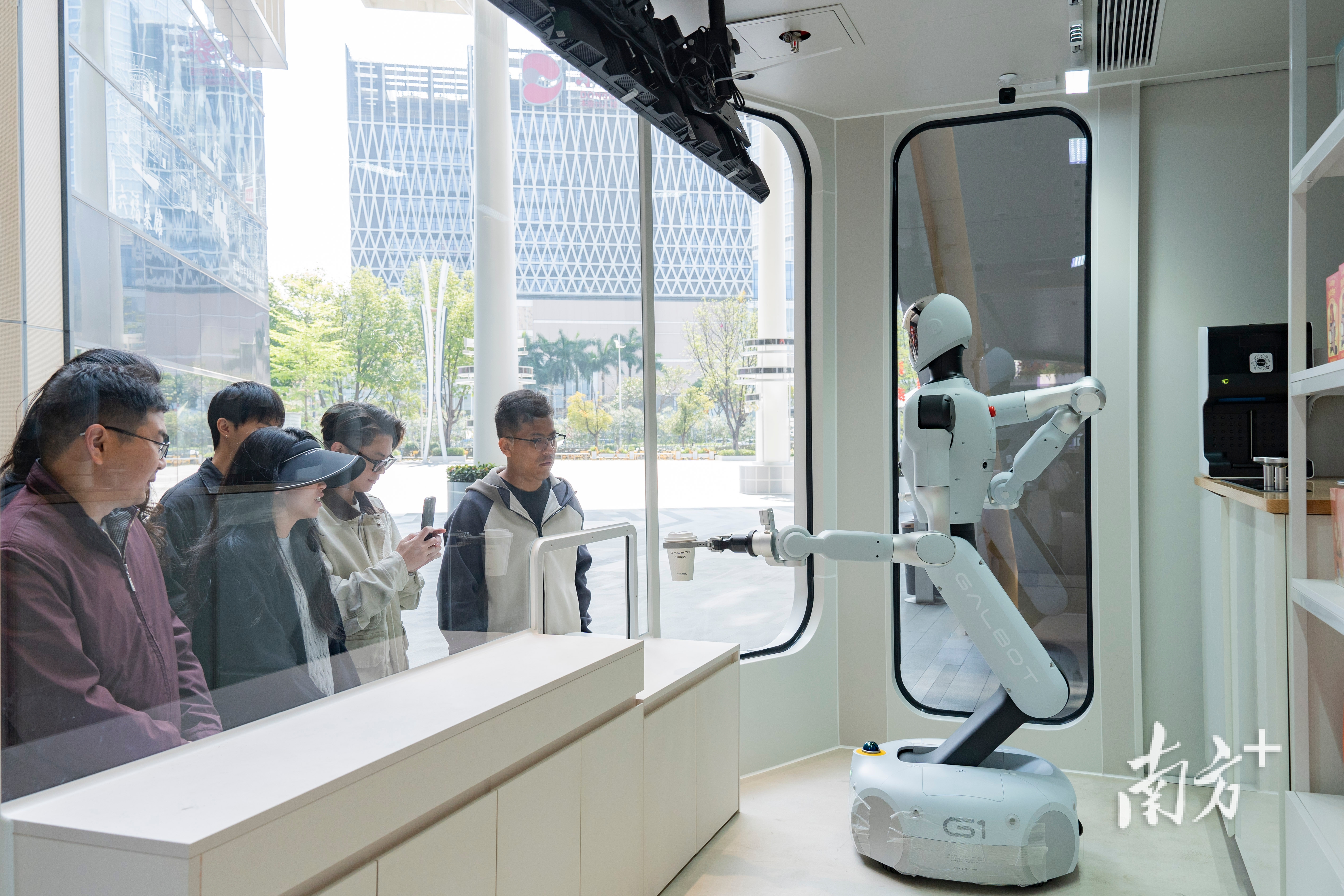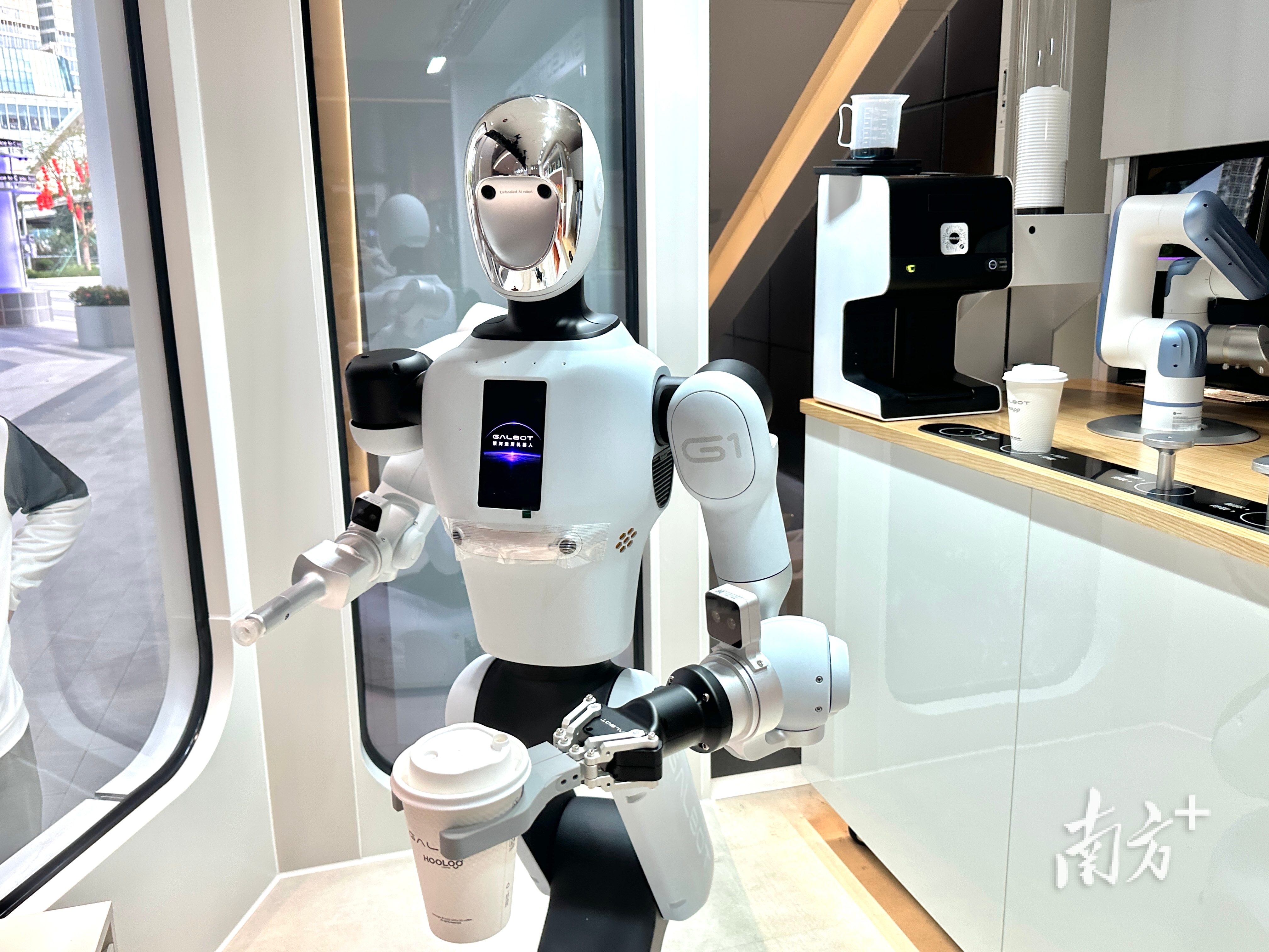 “在电视上看到的机器人,今天见到‘本尊’了!”市民陈先生拿着机器人刚做好的咖啡说道。家住附近的李女士带孩子来体验,“小朋友看着机器人很新奇,都目不转睛了。”
