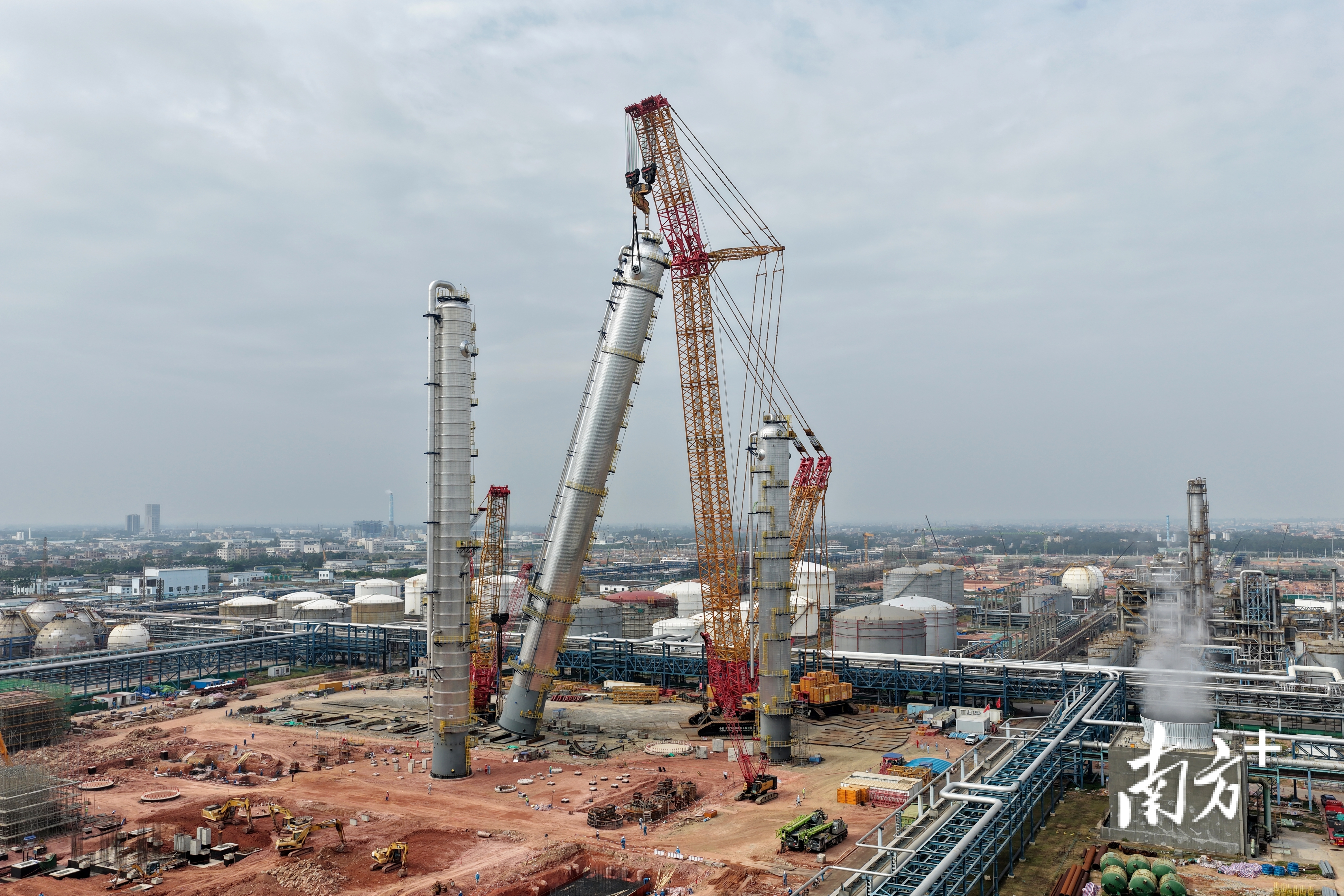 近日,茂名石化升级改造项目100万吨/年3号裂解装置建设现场再传捷报,2号丙烯塔在4000吨履带吊车精准操控下完成吊装。