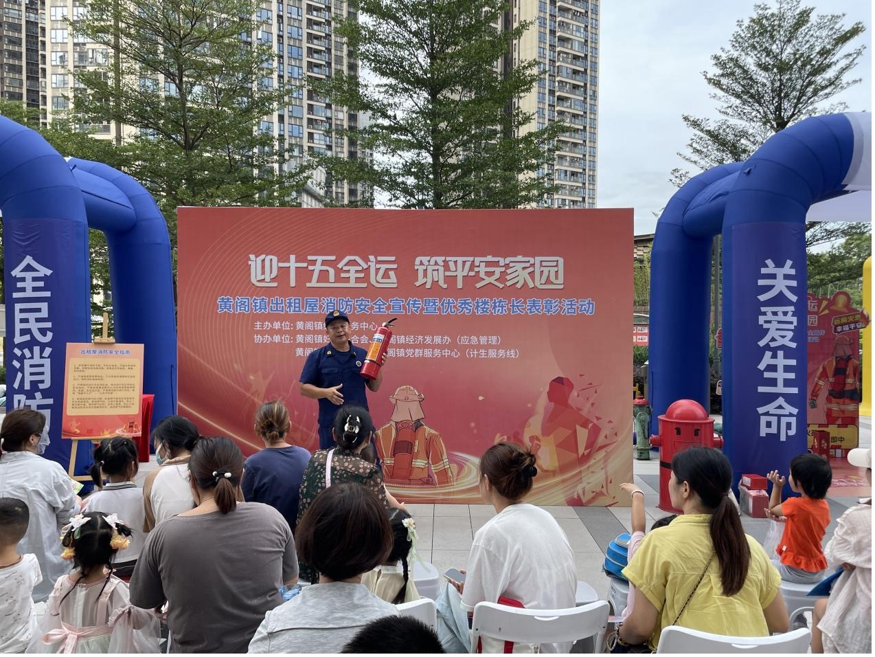 为了给即将到来的全运会创造良好的社会环境,切实提升广大出租屋主、租客及居民群众的消防安全意识,同时激发黄阁镇出租屋楼栋长的责任感和荣誉感,携手共建出租屋消防安全防护网,近日,黄阁镇综合事务中心联合镇平安法治办、镇经济发展办(应急管理)、镇城乡管理办、镇专职消防队、黄阁派出所等单位在悦方城广场组织开展“迎十五全运 筑平安家园”黄阁镇出租屋消防安全宣传暨优秀楼栋长表彰活动。各单位代表、各村(居)代表、出租屋主、2025年度莲溪村优秀出租屋楼栋长及社区居民群众约150人参与了活动。