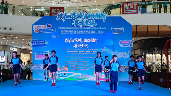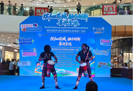 活动现场气氛热烈,中外友人轮番登台献艺,带来一场精彩纷呈的视听盛宴。外语志愿服务队的队歌首唱拉开序幕,外籍教师用动人的歌声演绎流行金曲,花都“跳绳天团”带来令人惊叹的高难度表演,非洲鼓点与青春舞蹈接连登场,节奏与热情交织,让现场掌声和欢呼声一浪高过一浪。