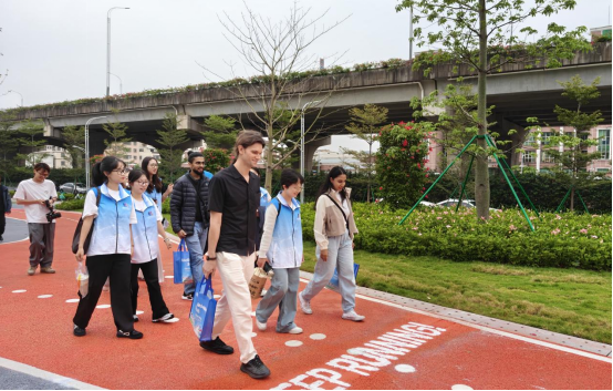 现场活动结束,外国友人和志愿者一同走进城际公园,在绿意盎然的步道上徒步。作为国际化街区的亮眼地标,城际公园串联起花都城市生态与人文景致,既为市民提供了休闲健身的新空间,也是花都展示文旅魅力的新窗口。外国友人们漫步其间,沉浸式感受花都在城市更新、生态治理、民生建设中的亮眼成果,于移步换景中领略这座城市开放包容的魅力与蓬勃生机。