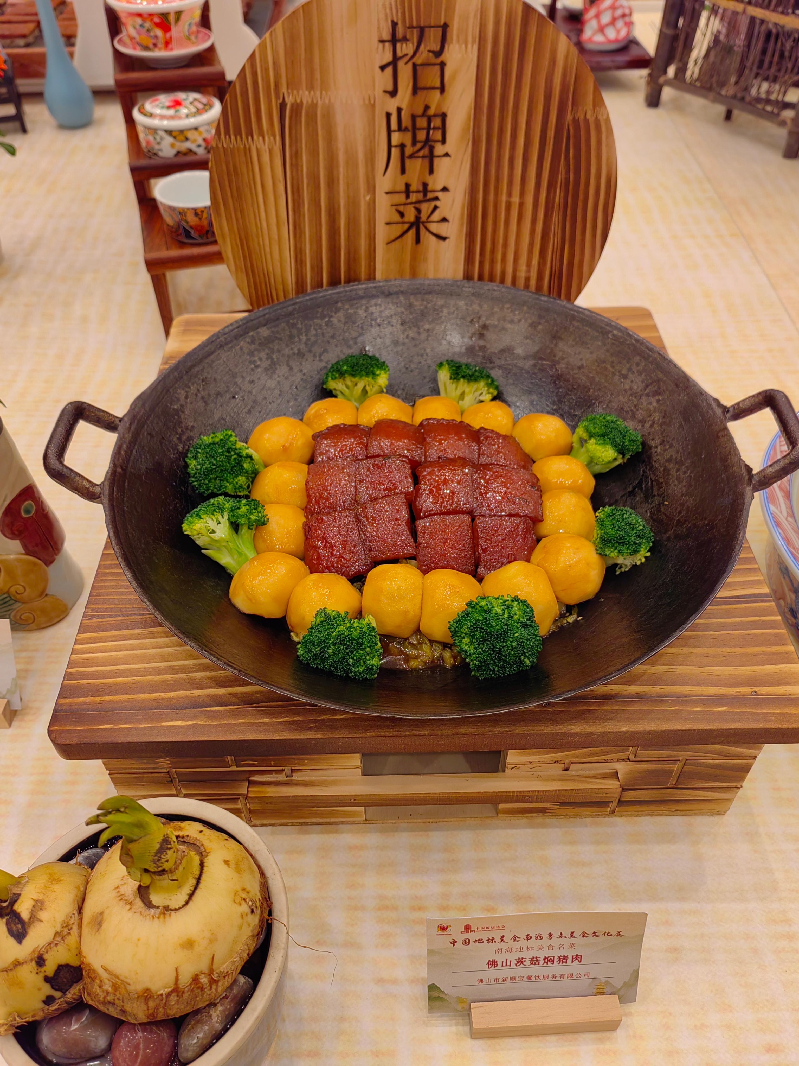 “茨菇焖猪肉”是官窑生菜宴的指定菜式之一,色泽红润,茨菇口感粉糯,肉香味浓郁。寓意添丁发财,子孙昌盛。